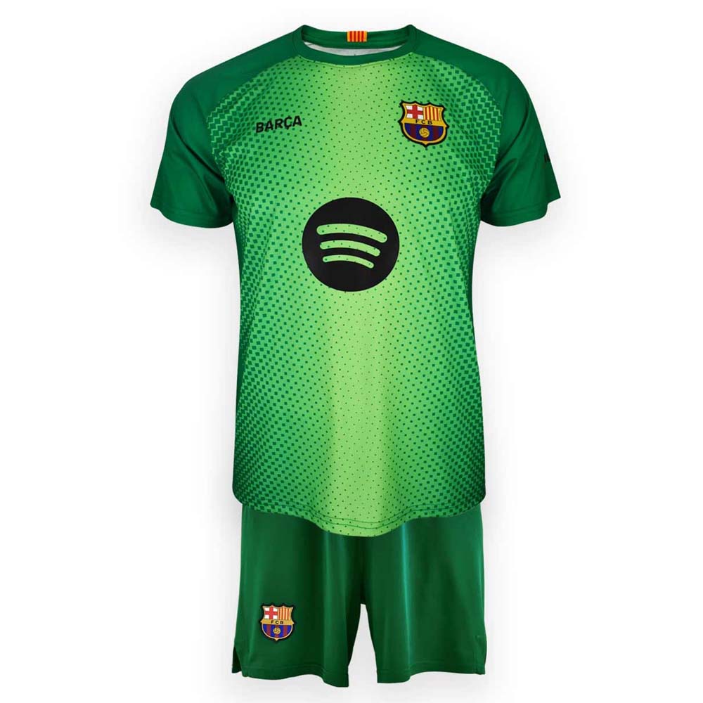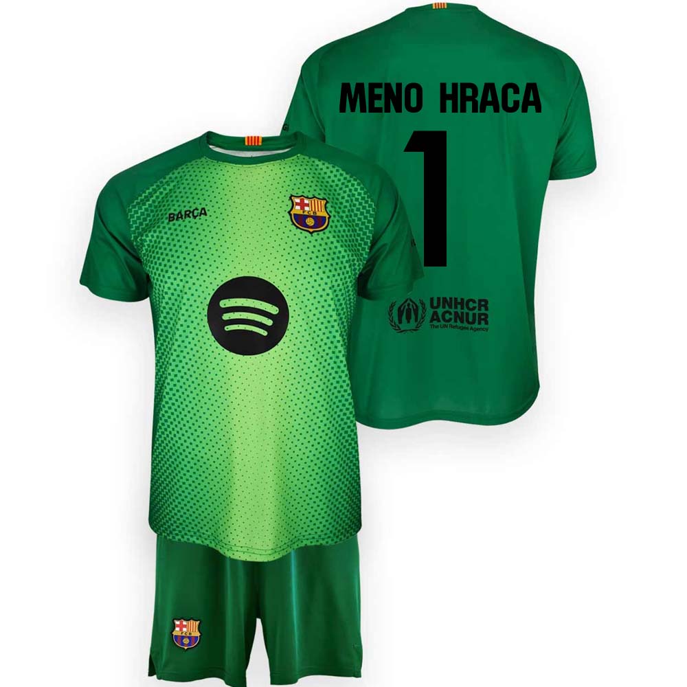 Detský brankársky dres FC Barcelona 2025/26 – oficiálny produkt určený pre malých fanúšikov Kataláncov.Je inšpirovaný oficiálnym dresom, v ktorom chytajú brankári ako Marc-André ter Stegen a Joan García. Dres je vyhotovený v nápadnej zelenej farbe s moderným pixelovým prechodovým grafickým motívom a prominentnými sponzorskými logami Spotify a UNHCR/ACNUR.Štandardný strih. 100% polyester.Sada obsahuje dres a trenírky. Možnosť potlače vlastného mena a čísla. Detský dres FC Barcelona oficiálny obsahuje znaky a logá klubu a je licencovaný FC Barcelonou.