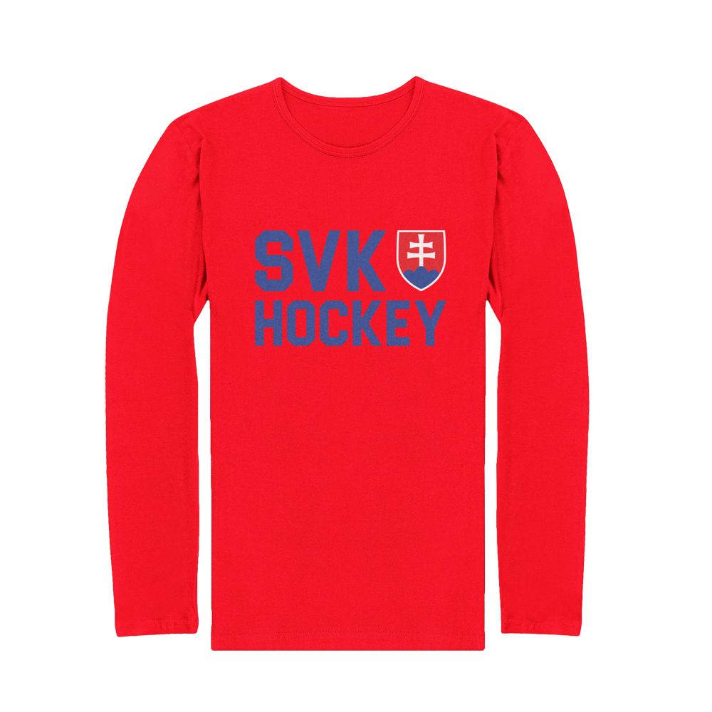 Detské hokejové tričko SVK HOCKEY s dlhým rukávom pre všetkých hokejových fanúšikov. Fandite našim v škole, vonku alebo na tréningu. Či už je Olympiáda alebo Majstrovstvá sveta: Slovensko do toho. 100% bavlna. V čiernej a červenej farbe. Možnosť vlastnej potače mena a čísla. Kolekcia [PITČ].