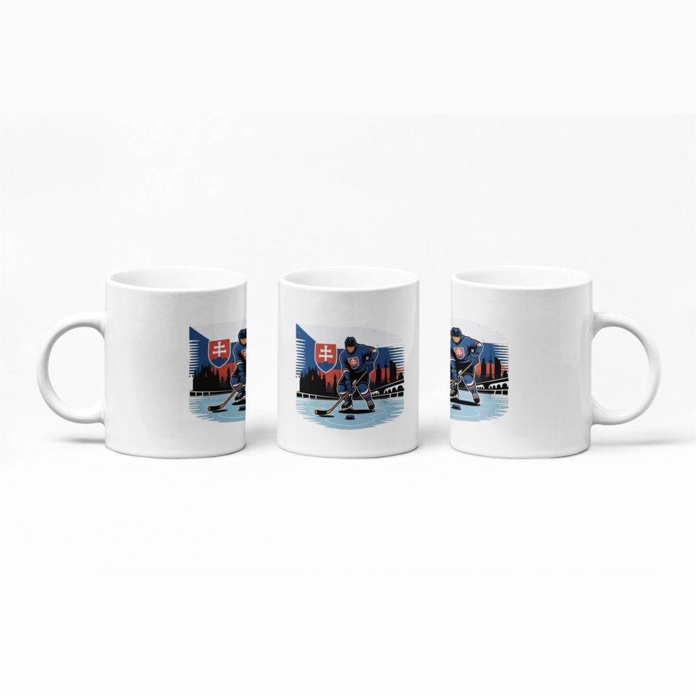 Štýlový biely hrnček s logom Slovensko Hokejista a slovenským znakom. Ideálny darček pre fanúšikov slovenského hokeja – do práce, domov aj na zápasy. Objem: 300 ml.