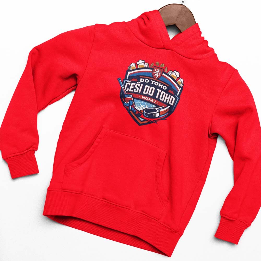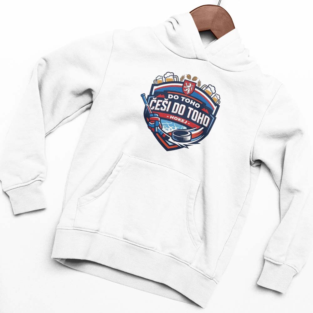 Štýlová hokejová mikina s kapucňou Češi Do Toho Erb pre všetkých fanúšikov českého hokeja. Pohodlný strih, kvalitná potlač a príjemný materiál z nej robia ideálny kúsok na zápasy, fandeniu aj bežné nosenie.