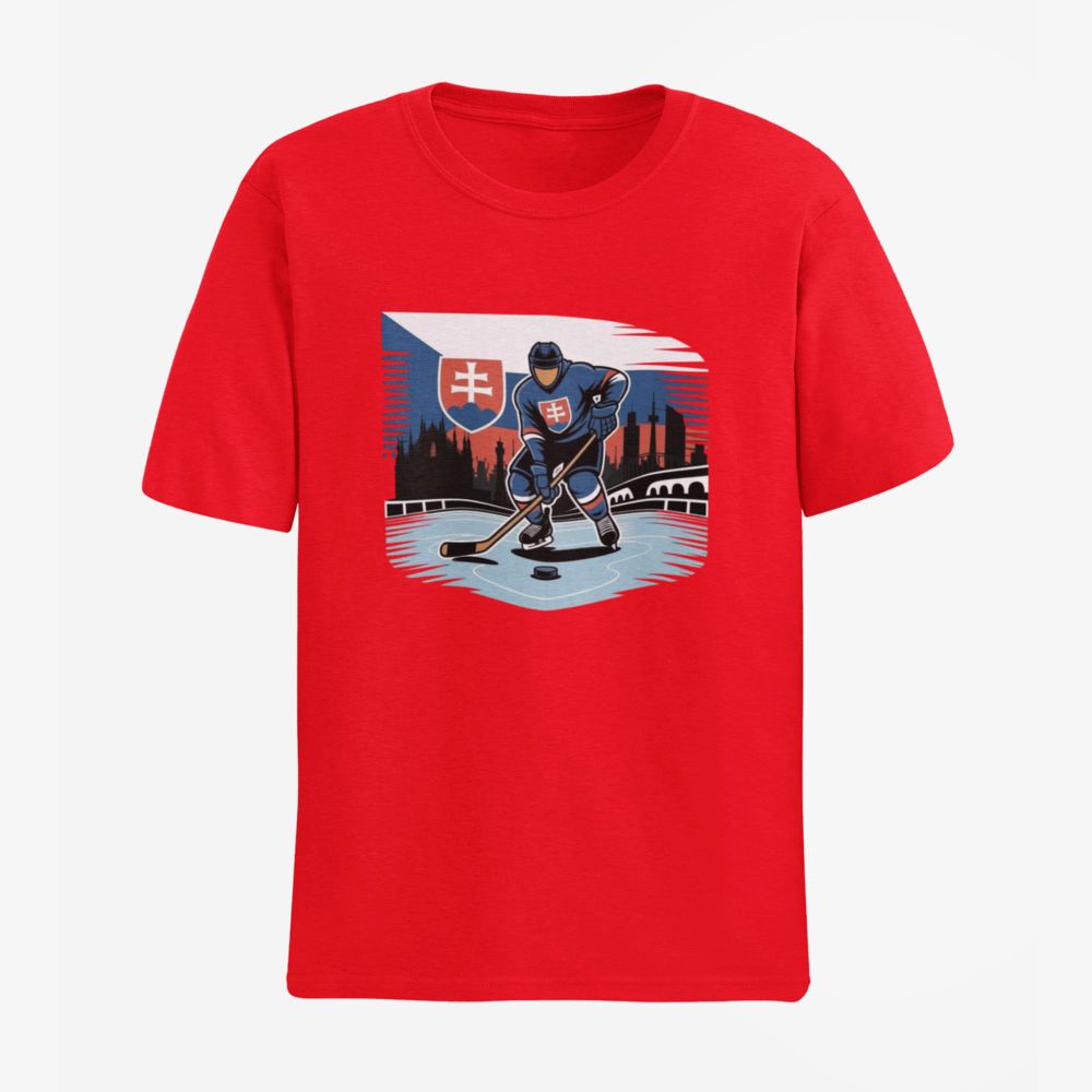 Podpor slovenský hokej štýlovo! Toto hokejové tričko Slovensko Hokejista je navrhnuté pre skutočných fanúšikov, ktorí chcú ukázať svoju hrdosť na ľade aj mimo neho. Dominantná potlač s logom Slovensko Hokejista a národným symbolom pôsobí moderne a športovo.